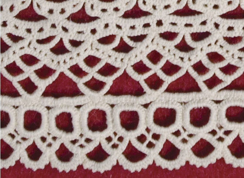 - The tight row of picots finishing the small scallops