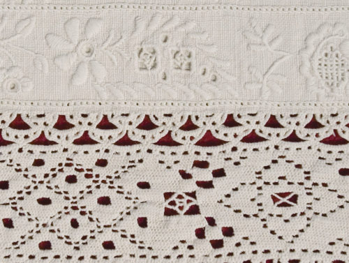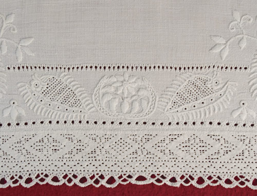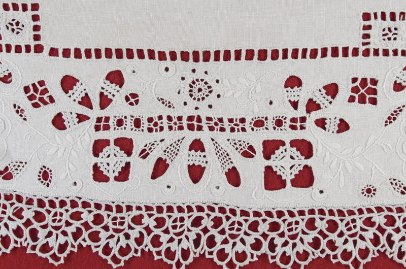 - The whipped hemstitch along the whole length of the collar’s embroidery. Traditionally, hemstitching was embroidered in horizontal lines without corners