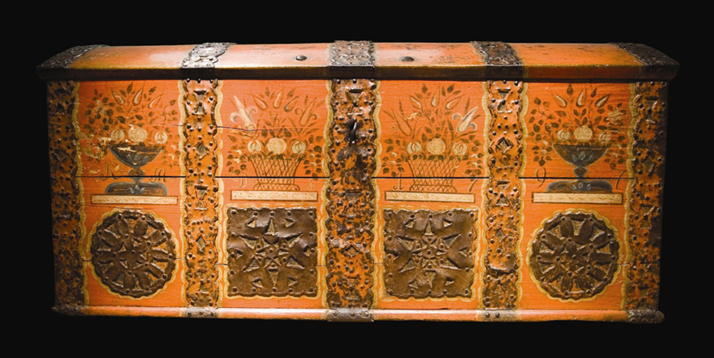Hedeboegnen er kendt for såvel hedebosyninger som fint dekorerede møbler. Motiver fra syningerne genfindes i møblernes bemaling.